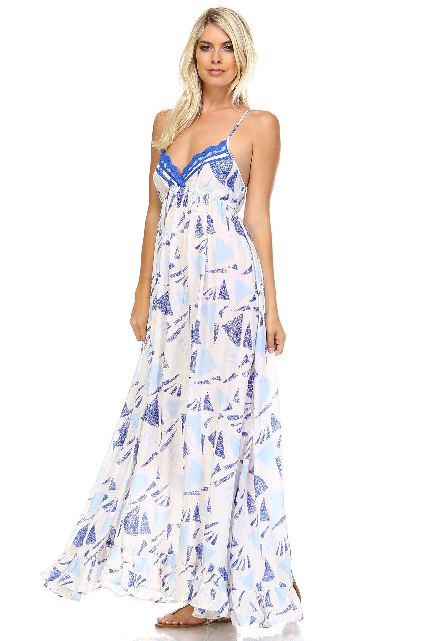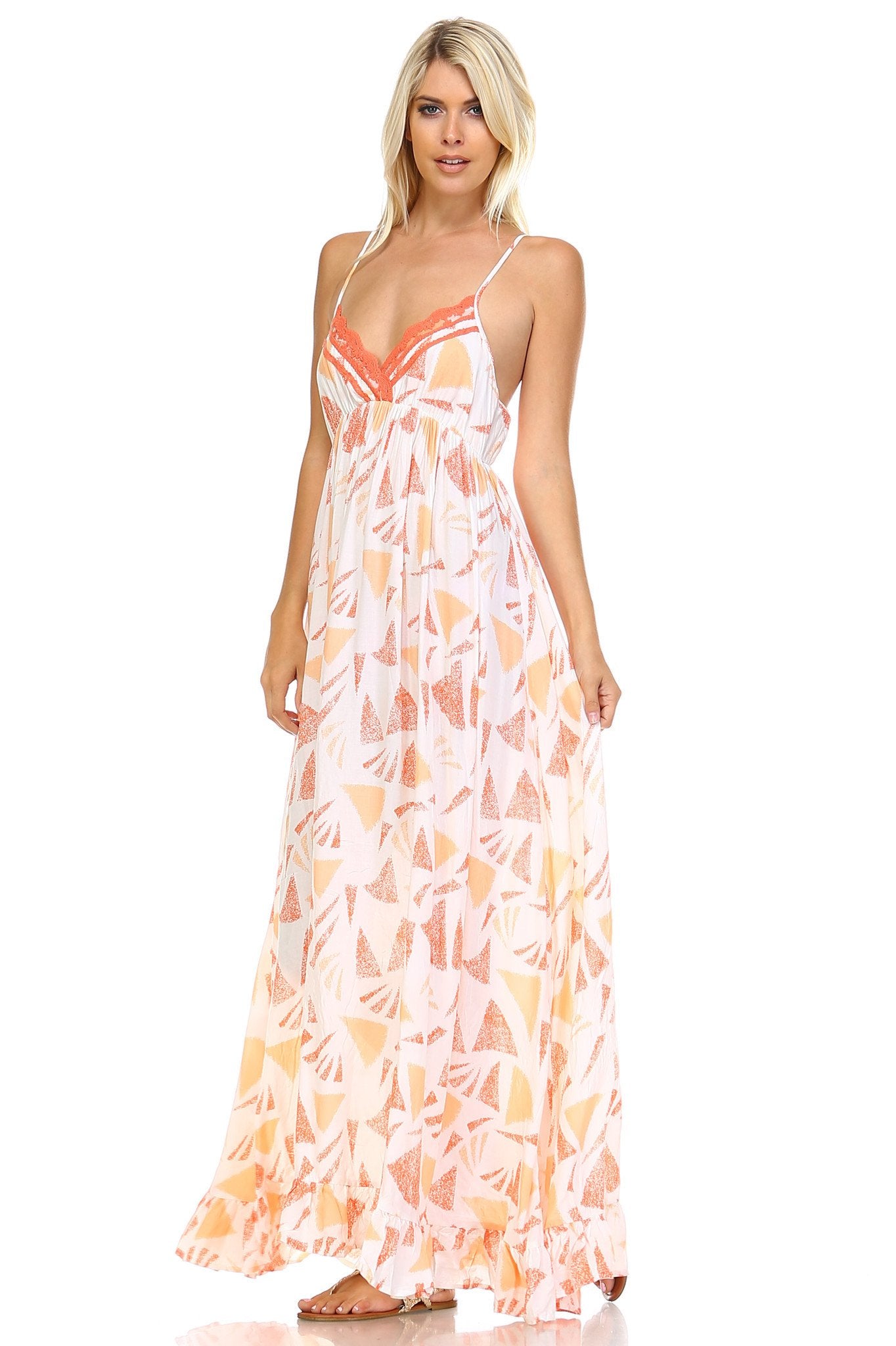 Women's Printed Tie-Back Maxi Dress w/Lace Trim – Eve's Body Shop